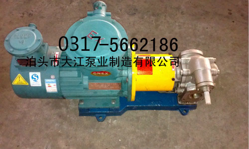 不锈钢磁力齿轮泵主要有齿轮、轴、泵体、安阀、轴端密封所组成。齿轮经过热处理后,具有较高的硬度和强度,与轴一同安装在可更换的轴套内运转。泵内全部零件的润滑均在泵工作时利用输出介质而自动达到。 不锈钢磁力齿轮泵安装和使用: 1、磁力泵应水平安装,不宜竖立,对于_要求垂直安装的场合,电机务必朝 上。 2、,起动前打开吸入管道阀门即可,若抽吸液面低于泵轴心线时,管道需配备底 阀。 3、泵使用前应进行检查,电机风叶转动要灵活,无卡住无异常声响,各紧固件要紧固。 4、检查电机旋转方向是否与磁力泵转向标记一致。 KCBC型磁力驱动泵使用注意事项: 1、因磁力泵轴承的却和润滑是靠被输送的介质,所以禁止空动转,同时避免在工作中途停电后再启动时 所造成时空载运转。 2、被输送介质中,若含有固体颗粒,泵入口要加过滤网:如含有铁磁质微粒,需加磁性过滤器。 3、泵在使用中环境温度应小于40℃,电机温升不得超过75℃。 4、 被输送的介质及其温度应在泵材允许范围内(详见附表)。金属泵的使用温 度100度-300度,粒度不大于30×10- 6m2/s的不含硬颗粒和纤维的液体。